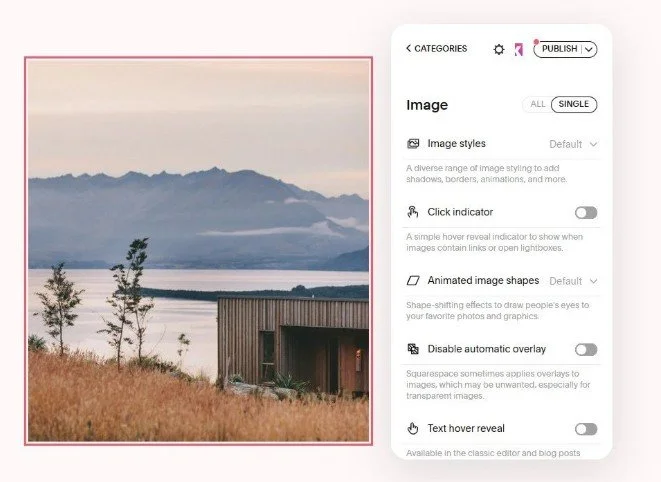 Here you can change the intensity and angle of the parallax effect, as well as zoom in and out of the image. You can also shuffle settings if you want Squarespace to randomize the effect visitors see.